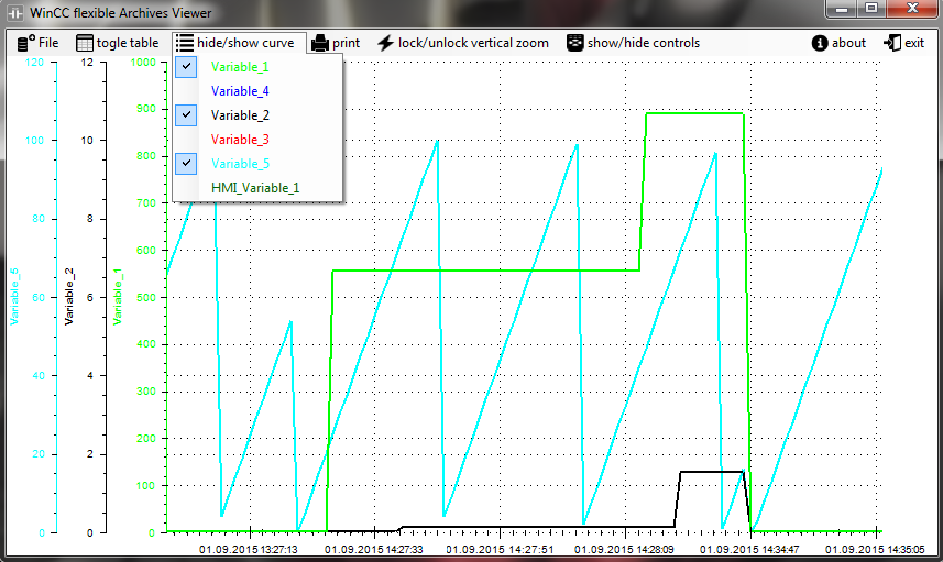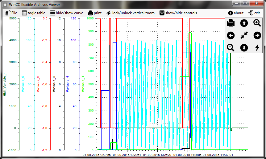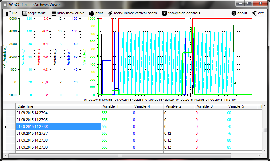 17. September 2015 | 17 Comments WinCC flexible and TIA Portal Archive Viewer Download WinCC Flexible and TIA Portal Archiv Viewer Supports WinCC Flexible 2005 and 2008 Archives and TIA Portal. Simple way to analyze logged data of WinCC flexible or TIA Portal, you can print completly trend or only a part of it. Very simple integration in HMI (command argumetnts like open automaticly a file ot open program in fullscreen mode), absolutely for free. Simple data view in table mode , sorted by record line and colleted of all channels in one row. Optimized for touch interface, you can use WinCC flexible and TIA Portal Archive Viewer without mouse right button, zoom in, zoom out, pan left, pan right, pan top, pan bottom. WinCC flexible and TIA Portal Archive Viewer suüports only CSV Files with no loop archivment method. be sure you are using followed setting for datalogging: Select file type CSV ASCII Select logging method (“display system event at” or “Raise event”): Features of WinCC flexible and TIA Portal Archive Viewer: Mouse Controls: Pan: mouse wheel button Zoom In/Out: mouse wheel Zoom Selection: mouse left Menu: mouse right button Commandline arguments: -f “filename” automatically open file example: -f “C:\Log\Temp365Tage0.csv” -fullscreen start Viewer in fullscreen mode -hidefilebutton hide the openfile button -hideprintbutton hide print buttons Short video presentation: Screenshots: wincc flexible and tia portal archive viewer channels selection for hide show wincc flexible and tia portal archive viewer table view wincc flexible and tia portal archive viewer 3 channels wincc flexible and tia portal archive viewer info wincc flexible and tia portal archive viewer one channel